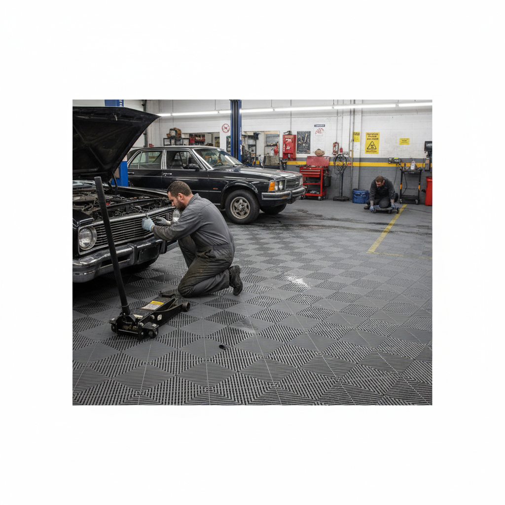 Perfect for garages, showrooms, and more. Combine style, durability, and safety effortlessly with our Premium Heavy Duty Modular Interlocking Ribbed Floor Tiles!