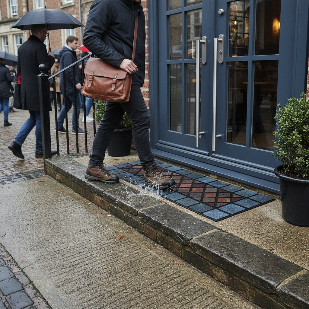Enhance your home with a Premium Eco-Friendly Rubber Step Mat, designed for both indoor and outdoor use. This heavy-duty mat is crafted from recycled car tyres, ensuring durability while contributing to a cleaner planet.
