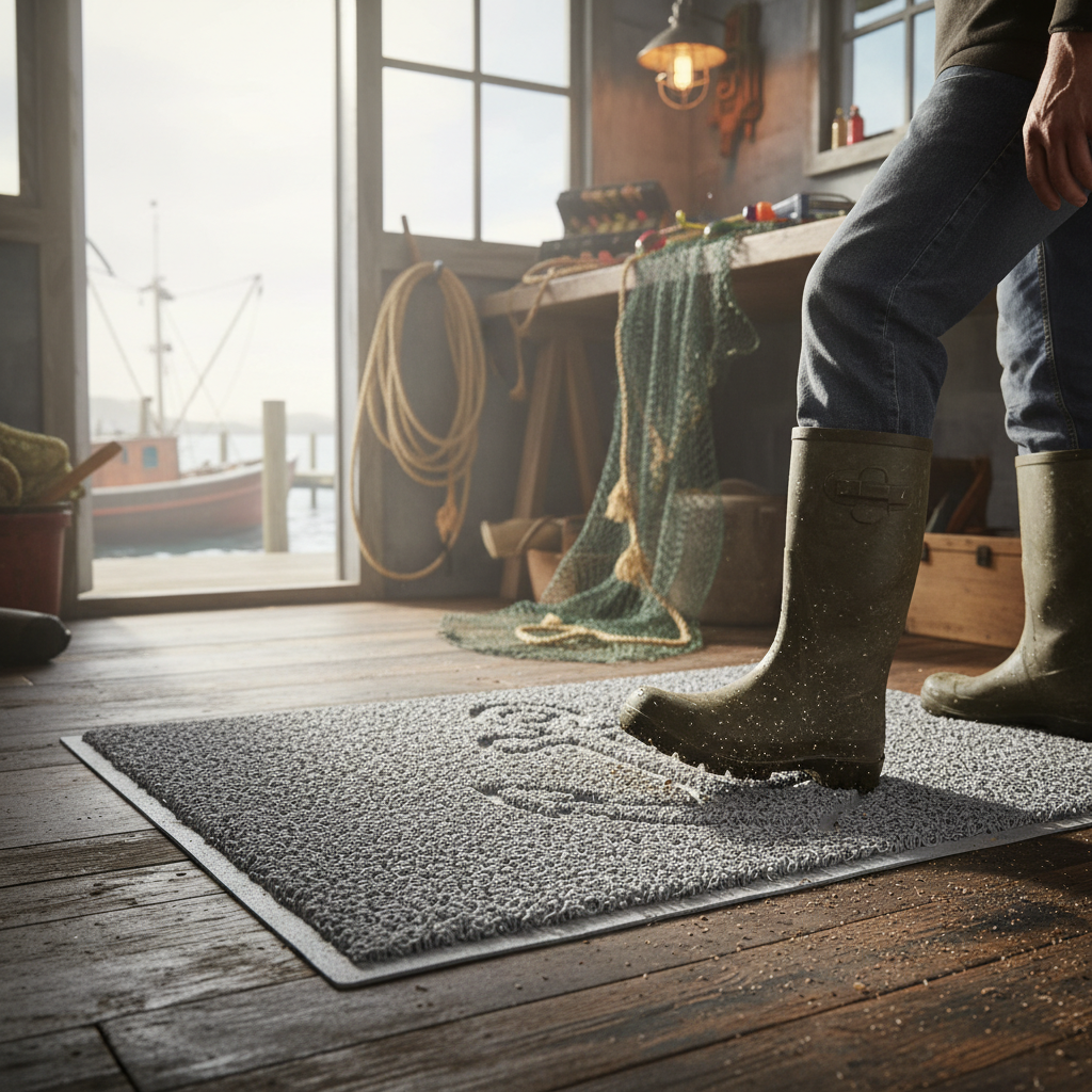 Welcome your guests with the Premium Indoor and Outdoor Anchor Embossed Spaghetti Mat, a stylish and functional addition to your home décor. Designed to keep your floors clean while adding warmth and love to your entrance, this mat combines practicality with charm.